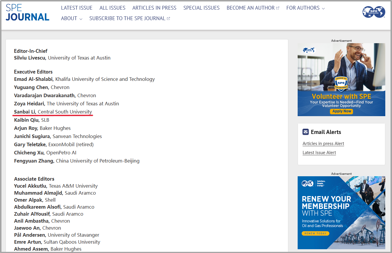 学院李三百教授担任国际权威期刊《SPE Journal》执...