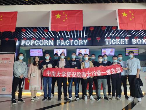 2020年10月12日上午,资源与安全工程学院硕士1901党支部为了庆祝新中国成立71周年,进一步激发我们支部党员的爱国爱党热情,并加深党员们对中国共产党历史与内涵的了解,也为了增强资源与安全工程学院19级一支部的核心凝聚力,在长沙市岳麓区王家湾湘核影院参与“祖国在我心中”《我和我的家乡》集体观影主题党日活动。硕士1901支部成员除在外出差人员全部参与。