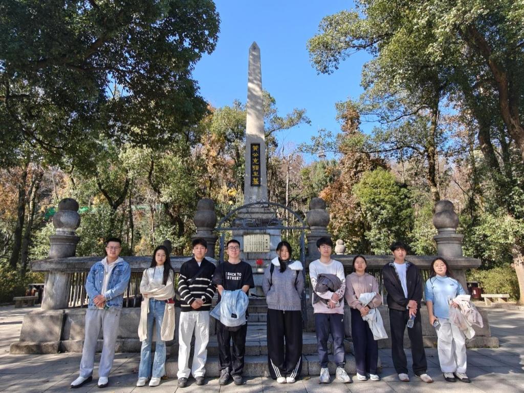 全体党员沿着山间步道拾级而上,在爬山途中先后瞻仰了肖劲光铜像与黄兴墓。在肖劲光铜像前,大家驻足凝视,这位从岳麓山走出的无产阶级革命家、新中国海军首任司令员,其投身北伐、长征及海军建设的峥嵘岁月仿佛历历在目。在黄兴墓前,苍松翠柏环绕,庄严肃穆的氛围中,全体党员鞠躬默哀,深切缅怀这位被孙中山誉为“开国元勋”的革命巨擘。随后,支部书记现场讲授实景微党课,生动讲述了肖劲光将军“矢志报国、治军强军”的戎马生涯,以及黄兴先生在黄花岗起义、武昌起义中“敢为人先、舍生取义”的革命事迹,引导青年党员深刻感悟先辈们为国为民的崇高风范与使命担当,进一步深化了对红色精神时代价值的理解。