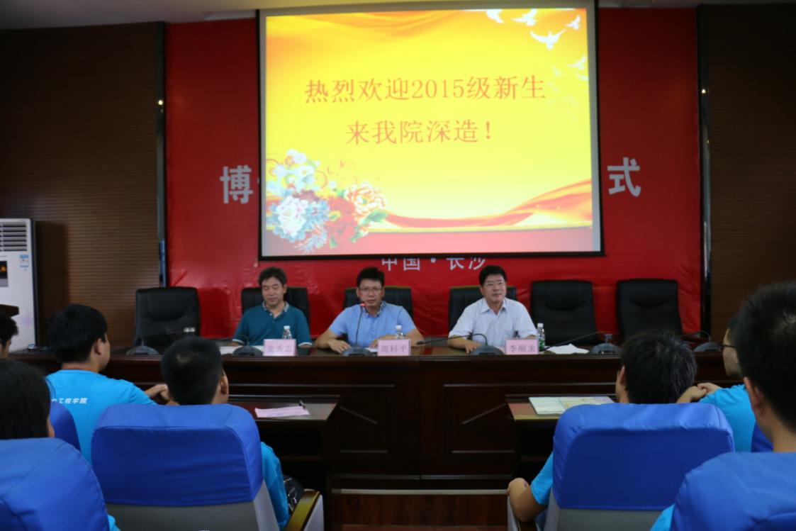 2015年9月7日下午3:00,资源与安全工程学院于校本部采矿楼302国际报告厅召开2015级研究生开学典礼暨入学教育大会,资安院党委书记李顺求书记、周科平院长、史秀志副院长、研工办李欢老师、秦俊老师以及2015级全体研究生出席了本次会议。会议由李欢老师主持。