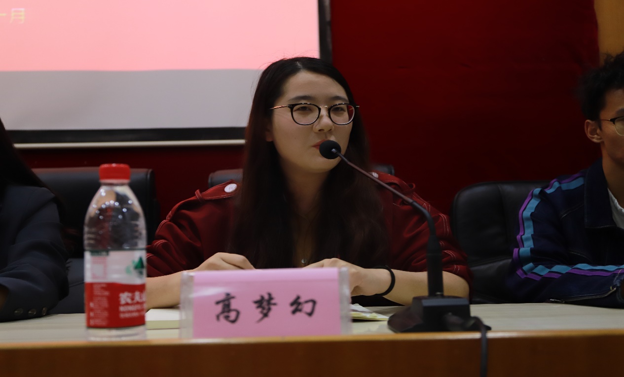 会议伊始,肖陆伟老师、肖碧涵老师以及高梦幻老师分别发表讲话。肖陆伟老师围绕“继承与发展”两点,希望各位新成员能肩负各自职责,鼓励组织成员以组织为平台,建设平台,发展自我;肖碧涵老师就学生干部应秉持的以身作则,服务同学的原则以及应具备的沟通交流能力向各部门人员提出要求,表达了对学生干部自我成长,自我发展殷切期望。