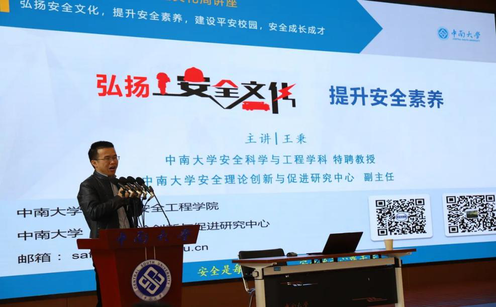 (图为王秉老师开展《弘扬安全文化,提升安全素养》专题讲座)