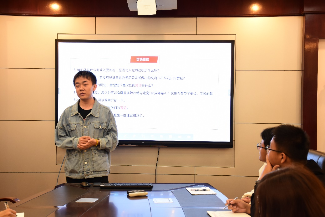 张炳一就本次调研活动的意义、时间、形式和成果对培训人员进行讲解,着重讲述了人物访谈的流程,并对联系对象的方式提出建议,强调访谈时尊重对象的隐私及意愿。刘波针对访谈时的提纲进行讲述,希望访谈人员访谈时能够充实内容但不拘泥于提纲顺序,依照回答随机应变,同时注意对话的礼貌问题,展现个人修养。王元源对于访谈后访谈稿的格式和形式问题进行培训,提醒访谈者前期做好充分准备,避免出现突发情况,保证访谈的顺利进行。随后,三位主讲人对于参加人员提出的问题进行解答,对于如访谈对象不接受录屏等情况给出应对方式,并对后续活动的开展做出安排。至此,培训会圆满结束。