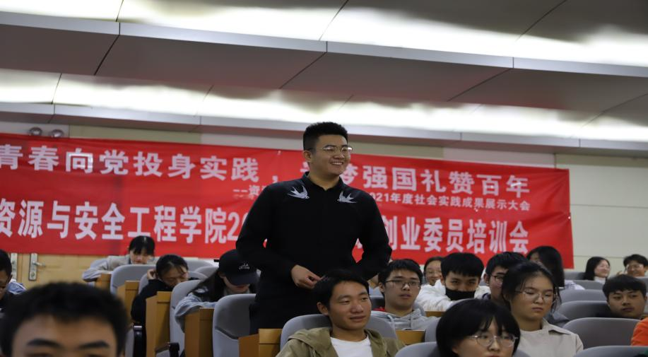 10月17日14:00,yl6809永利资源与安全工程学院“青春向党投身实践,逐梦强国礼赞百年”——2021年度学生暑期社会实践成果展示大会暨第一次创新创业委员培训大会在校本部采矿楼T201顺利召开。此次活动共有八支社会实践团队进行展示,邀请了学院分团委书记孙瀚老师以及2021级辅导员李嘉老师来对各团队的实践情况进行点评指导。