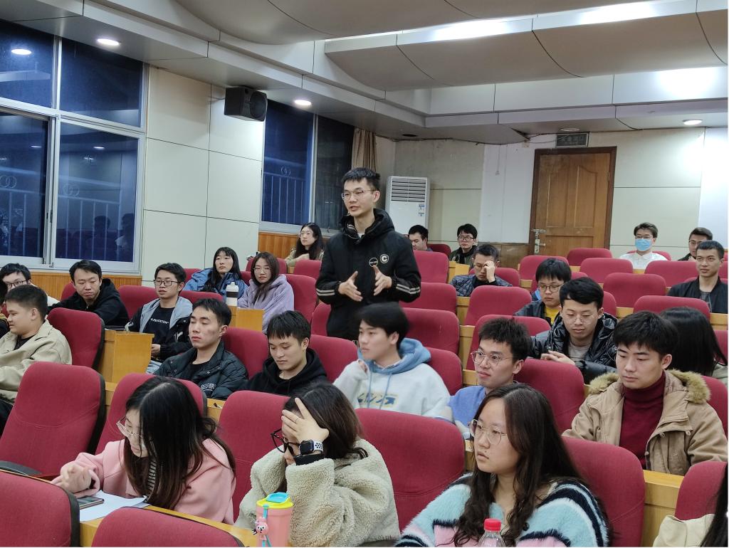 随后,我院20级硕士研究生张炳一分享了文献阅读和论文插图两方面的见解,在文献方面他推荐大家按照由浅至深的顺序阅读,写作时选择内容完善、用词严谨、插图美观的论文作为参考对象。他结合自身科研经历告诉同学们要以“兴趣”为起点,不断“模仿学习”,加之“潜心”和“坚持”,终会有所突破和成长。