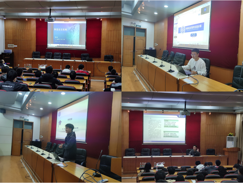 紧接着,我院20级博士研究生郭腾飞就如何写好一篇科技论文展开分享,他结合时下前沿发展方向指出硕士论文的核心要点在于勤于思考,提出问题,注重创新。以第一次发表论文时的经历为实例,他鼓励同学们都能勇敢地迈出科研的第一步,成为科研观点的表达者。