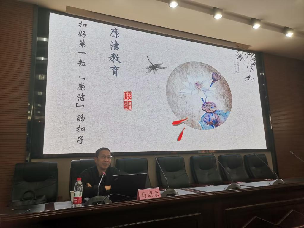 马书记主要从“传统文化中提高廉洁意识、党史学习中探索廉洁本质、现实生活中恪守廉洁准则”三个方面,为全体本科新生立体剖析廉洁文化教育的丰富内涵。讲座过程中,马书记多次穿插真实事例,从现实生活出发讲述拒腐防变的重要意义,使得参会学生对于“廉洁文化教育”的认识和意义更加清晰、深刻。讲座结束,现场掌声嘹亮,表达了与会学生对于马书记讲话的由衷感谢。至此,“廉洁文化教育”专题讲座落下帷幕。