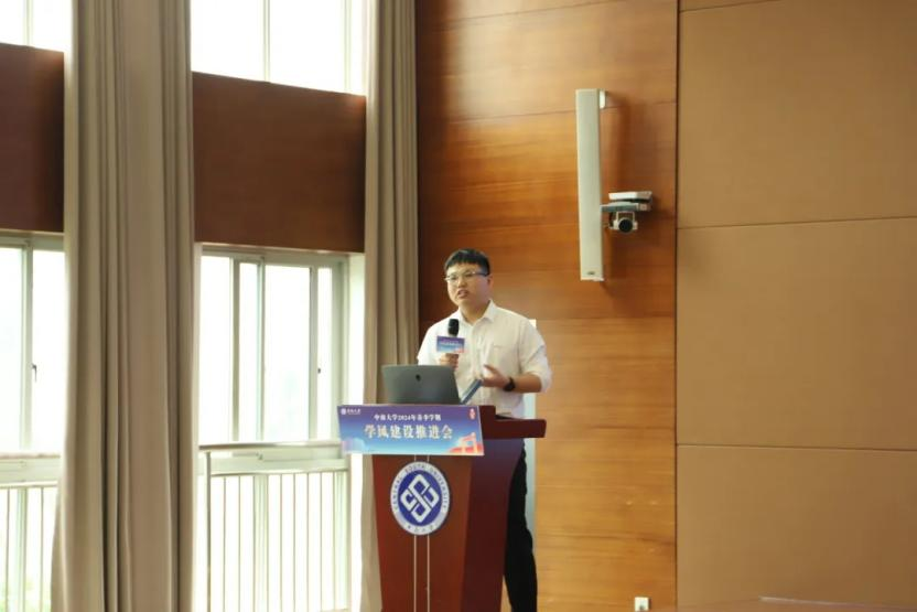 在会议的分享交流环节,我院辅导员、学风建设专干李嘉老师受邀作为学风建设典型学院代表进行经验分享。李嘉老师从学风建设难点、学业动力提升和学风建设措施等三个方面,全面介绍学院学风建设和学业辅导的工作概况。