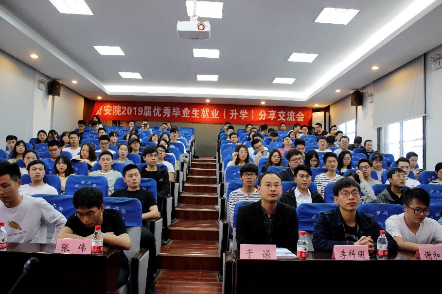 5月10日下午,资安院2019届优秀毕业生就业分享交流会于采矿楼T302成功举办,资安院研究生辅导员于谦老师出席,资安院一百余名研究生参加了本次活动。