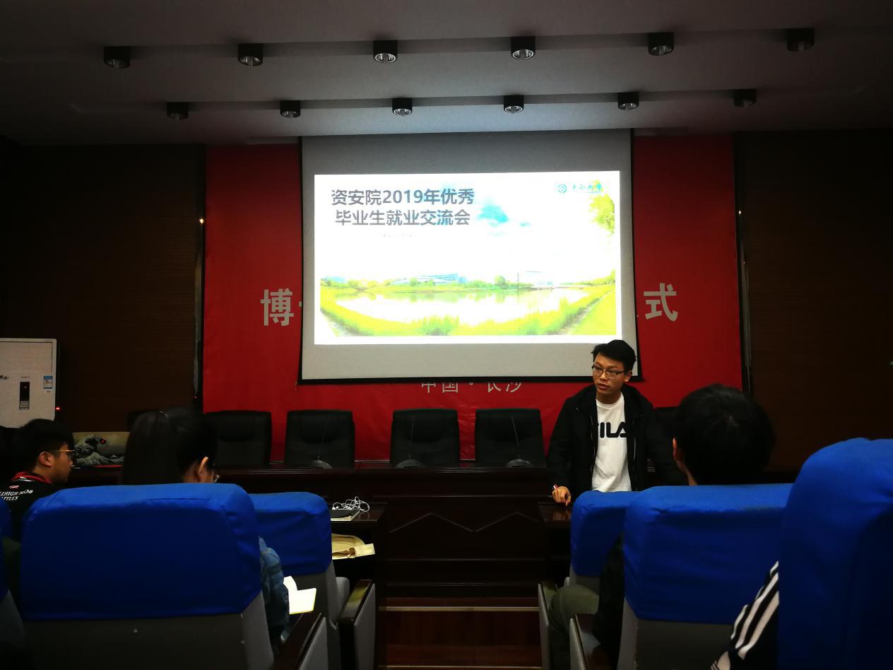 本次交流会邀请了本科15级城地、采矿、安全三个专业就业成功的优秀代表进行经验分享 ,四位就业学生代表结合自身经历,以风趣幽默的语言向同学们分享了应聘工作时的经验和注意事项。