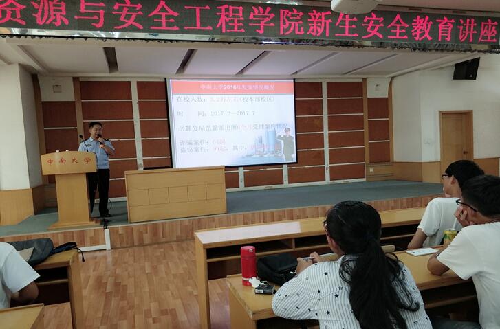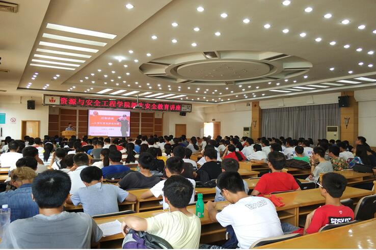 2017年9月30日下午2:30,资源与安全工程学院2017级新生入学安全教育讲座于校本部立言厅成功举行。本次讲座由从业12年的周警官主讲,周警官在任职期间曾破获诈骗案64余起,盗窃案99余起,从业经验丰富。讲座由资安院党委副书记孙胜主持,2017级研究生新生及本科生参加了本次活动。