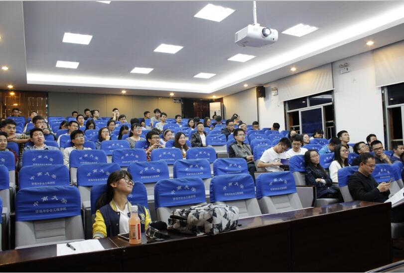 2017年4月28日晚上7:00,资源与安全工程学院在采矿楼302报告厅成功举办了2017届优秀毕业研究生经验分享交流会。此次交流会由研究生辅导员于谦老师主持,学院近百名研究生参与了此次活动,17届硕士毕业生王品、黄天朗、梁伟章、谢榈潜、刘栋、胡晴作为与会嘉宾分别从学术科研、就业前景、人生规划、学生工作等多个方面先后为到场同学带来了精彩的演讲与展示。
