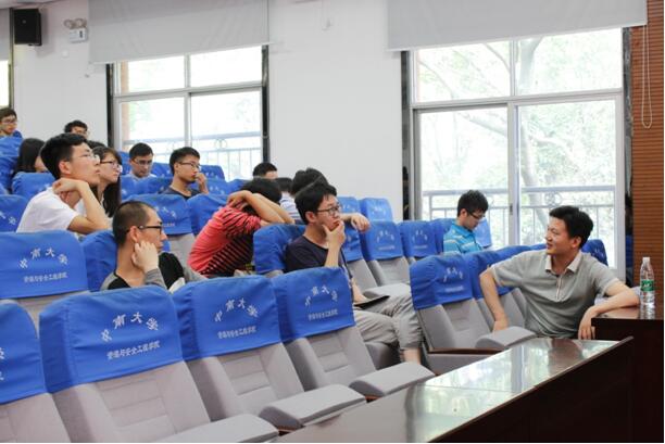 马丹就读于中国矿业大学,博士期间曾在英国诺丁汉大学联合培养,研究生和博士阶段共发表28篇高水平SCI论文,其中以第一或通讯作者身份发表19篇,另外拥有发明专利6项。马丹博士本次讲座的主要内容为“颗粒迁移下破碎岩体渗流场的时空演化规律”。首先,他给在座同学们介绍了国内外科研环境的差异,比较了中外科研条件的优缺点。随后,马丹博士就他已取得的主要研究成果进行了汇报,其内容包括:边界元理论及数值计算、深部破碎带的突水机理及破碎岩体的渗流试验与理论。最后,他主要介绍了自己在颗粒迁移下渗流场时空演化、细沙涌入的渗流机理和渗流失稳规律差异等方面的最新研究进展与创新点。学术报告结束后,在座研究生们就自己的疑问与马丹博士进行了交流探讨,现场气氛热烈。