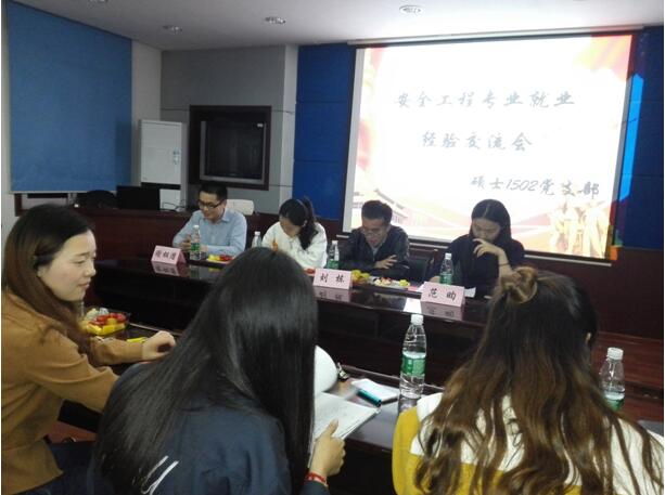 为了更好地解决班级同学今后的就业问题,树立正确的就业观和择业观,5月8日晚,资源与安全工程学院硕士1502党支部在采矿楼224举办了毕业研究生求职经验交流会。此次交流会由党支部李小庆同志主持,毕业生刘栋、谢榈潜、靳颜宁、范昀分别从选调生经验分享、求职准备、职业规划等多个方面为到场的40余名同学进行了精彩的介绍。