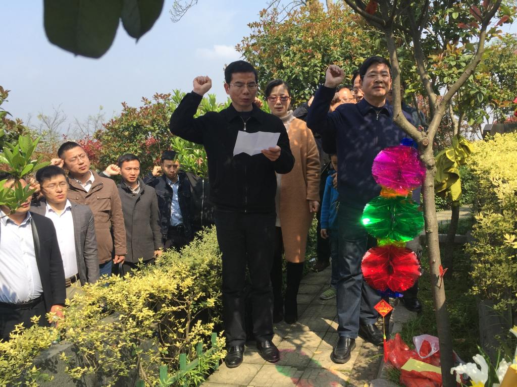 辅导员向林老师敬献鲜花,行注目礼,表达对林老师的崇高的敬仰和深切的怀念,学院党委孙胜同志领誓重温入党誓词。