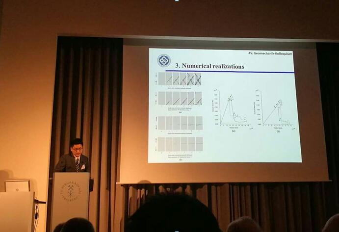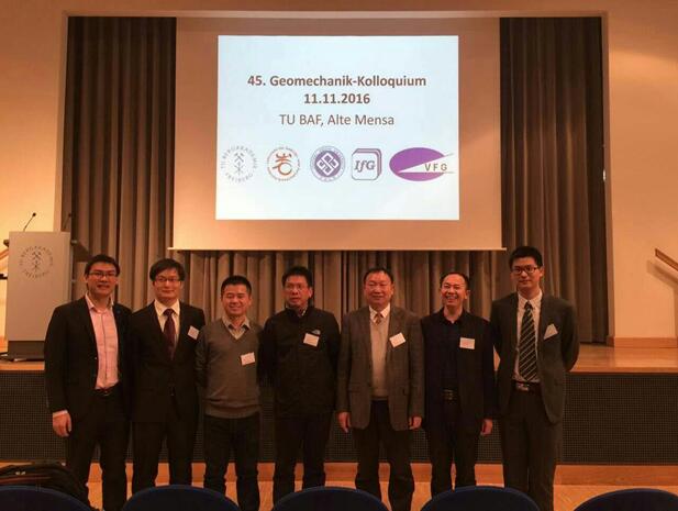 2016年11月9日至12日,由德国弗莱贝格工业大学与我校合作主办的第45届国际地质力学研讨会(The 45th Geomechanics Colloquium)在德国弗莱贝格市举行,本届会议合作方还包括莱比锡地球力学研究所(Institute of Geomechanics GmbH Leipzig)和弗莱贝格岩土力学协会(Verein Freiberger Geotechniker),来自德国、中国、美国、英国、瑞典、奥地利、俄罗斯、捷克等十几个国家的130余名代表参加了会议。我院派出了由曹平副院长、周科平教授、黄仁东教授、林杭副教授和李响讲师5人组成的代表团赴德国进行本次会议的组织与协调工作。林杭副教授和李响讲师分别在会议上作了大会学术报告,获得了广泛的关注与好评,并与参会人员就关心的问题进行了深入的讨论。我校派出的正在德国弗莱贝格工业大学攻读博士学位研究生党文刚和联合培养博士研究生戴兵也参加了本次会议。