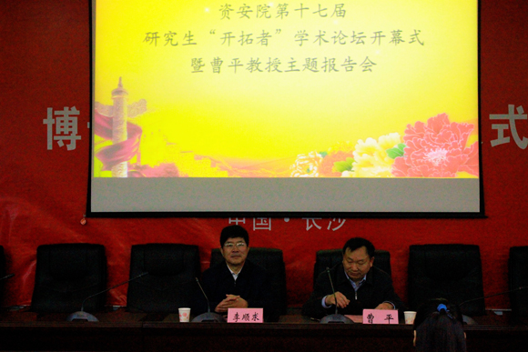 2016年12月2日15:00,资源与安全工程学院于采矿楼302报告厅举办了第十七届研究生“开拓者”学术论坛开幕式暨曹平教授主题报告会。本次论坛以“为学尚新、唯理崇真”为主题,学院李顺求书记、曹平副院长、研究生辅导员于谦老师出席了此次会议,16级硕士研究生李童同学担任主持,全体16级研究生参加了此次活动。