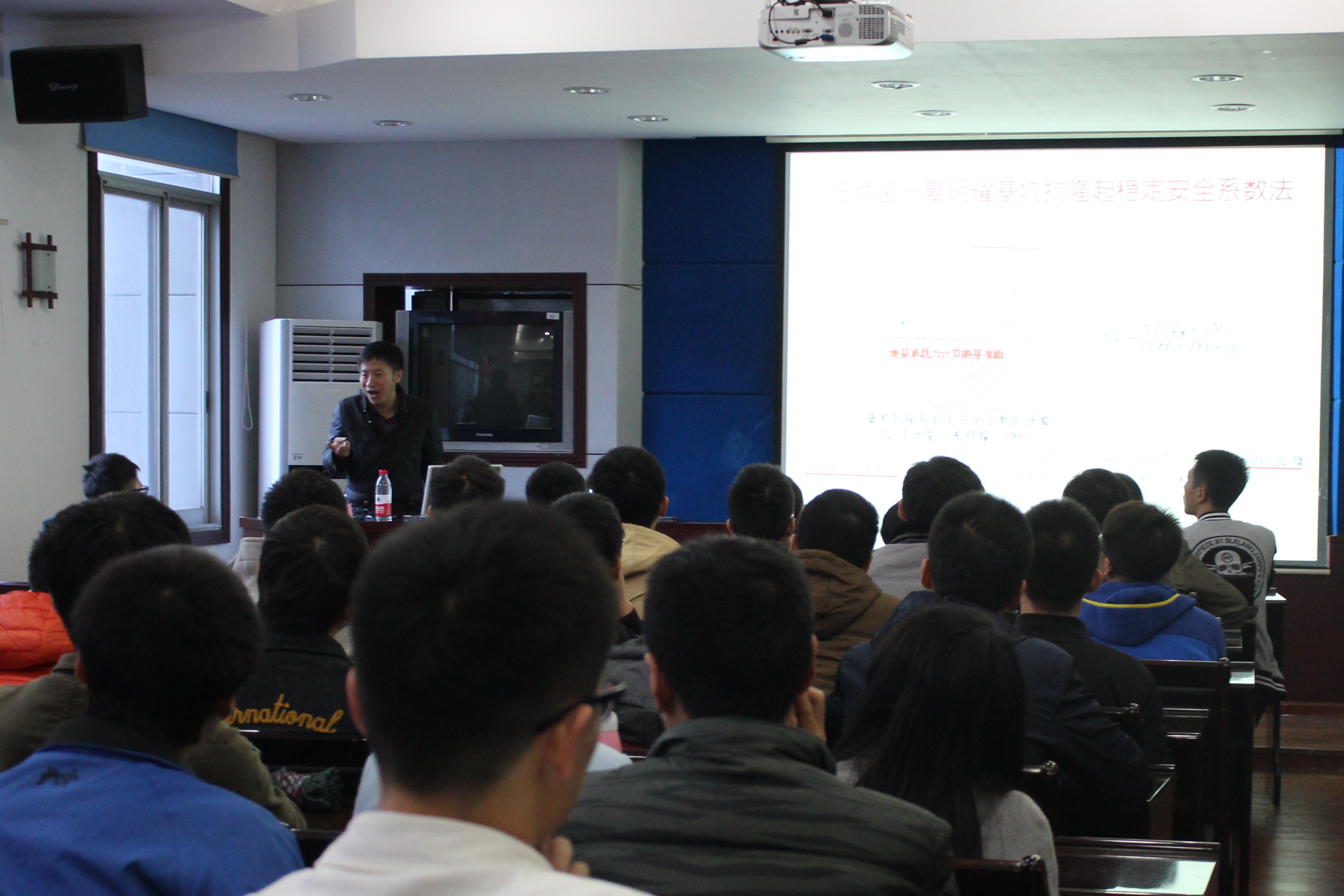 讲座伊始,王洪新总工并没有用枯燥无味的专业知识开篇,而是把偶像的力量作为主题开始了本次讲座,形式新颖,内容丰富,引起了同学们极大的兴趣。随后,王洪新工程师为同学们详细阐述了两大问题,分别是什么才是优秀的岩土工程师以及怎样才能成为优秀的岩土工程师。王老师的讲座结合了各种工程实例和实地工作经验,具有很强的针对性。而后王工以多位岩土界大师为例为我们讲述了什么是优秀的岩土科研精神,并给大家分析了成为优秀岩土工程师必备的素质。讲座内容贴近同学们就业方向及职业规划,赢得了在场同学的阵阵掌声。