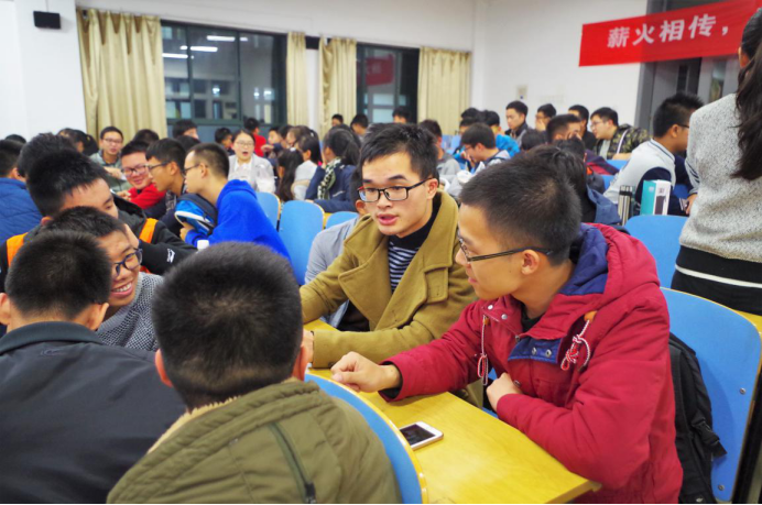 随后,优秀研究生代表走下讲台,走近新生。结合自身情况,新生与优秀学生代表进行了一对一面对面的交流。现场气氛活跃,互动频繁,达到了活动的预期效果。