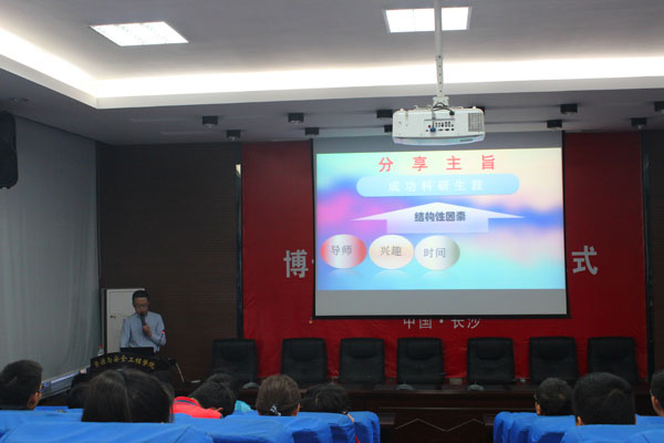 交流会伊始,王秉同学就强调了理想的重要性,有了理想才能确立目标,才能进而循着目标向成功的彼岸一步步靠近。随后,王秉同学劝告在座各位,务必要戒骄戒躁,夯实基础,只有真真正正的静下心来才能在科研方面有所成就。交流会期间,同学们都聚精会神的听讲,并且积极地与王秉师兄进行交流探讨。最后,同时参与交流会的研究生辅导员于谦老师也发表了讲话,他要求大家都应该向王秉同学学习,使自己的研究生生活更加的充实且有意义。