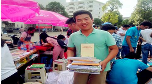 同学们热情高涨,一早就来寻觅心仪的书籍,人来人往,好不热闹。学长学姐们热情的向大一的学弟学妹介绍大二需要学习的课程、有用的书籍,满满的温暖感人不已。一位大二的同学在南校区没有找到想要的书籍,直接跑到本部来找,当他抱着一大摞书籍来登记时说:“真的很感谢学长学姐们把书捐赠出来,我基本找到了下学期所有要用的书,还有他们珍贵的爱心笔记,我一定好好珍藏,到明年的学长的火炬将这些书籍继续传递下去!”