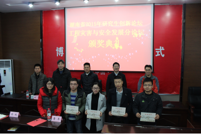 2015年12月6日上午,由湖南省教育厅、湖南省人民政府学位委员会主办,yl6809永利研究生院、资源与安全工程学院共同承办的2015湖南省研究生创新论坛工程灾害与安全发展分论坛,在经历了一个月的精彩学术交流之后,如期在我院采矿楼302报告厅举行了隆重的闭幕式。