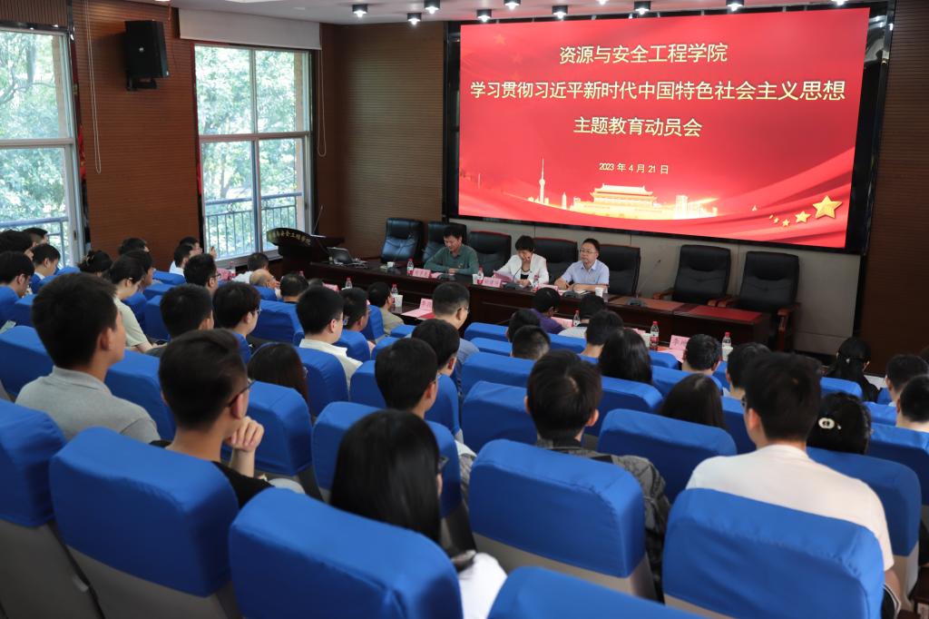 为深入落实学校党委关于开展学习贯彻习近平新时代中国特色社会主义思想主题教育会议精神,结合学院的工作实际,4月21日上午9:30,资源与安全工程学院学习贯彻习近平新时代中国特色社会主义思想主题教育动员会在采矿楼T302报告厅召开。院党委书记欧旭理作动员讲话,对学院开展主题教育进行全面动员部署。学校主题教育第四指导组组长、校党委统战部常务副部长刘建华作指导讲话。学校主题教育第四指导组副组长李华东、汪平,指导组成员张艳武、许宁,学院领导班子成员,学院中层干部和党支部委员参加会议,会议由资源与安全工程学院党委副书记、院长周子龙主持。