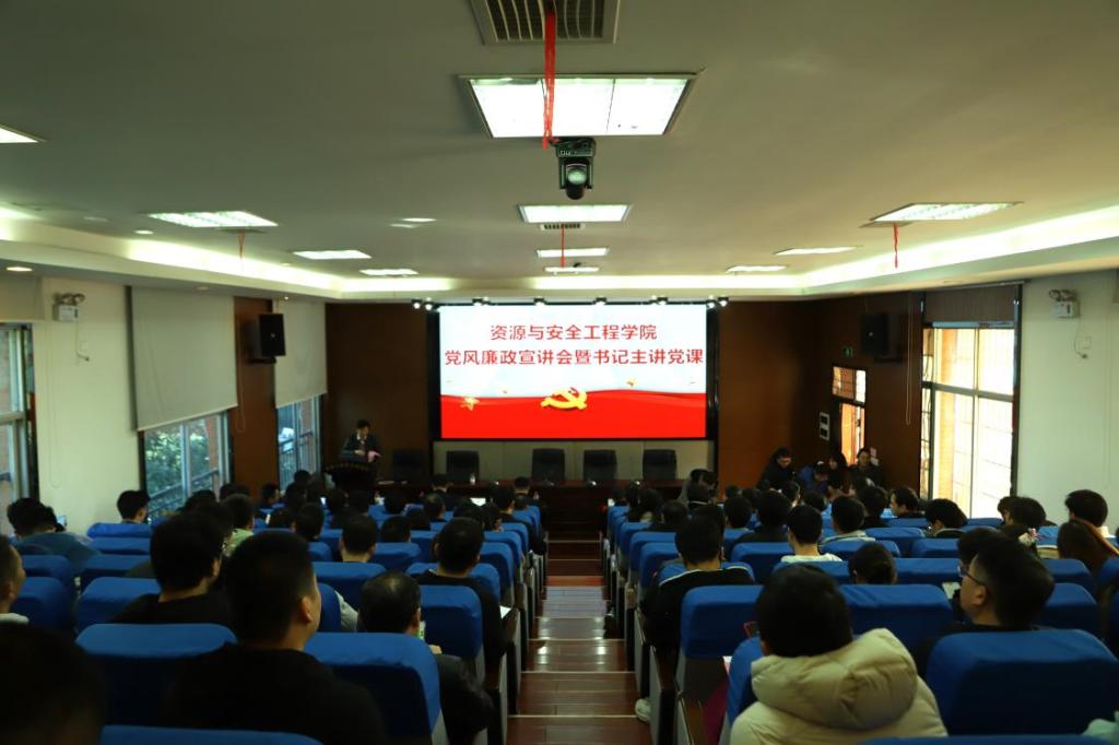 2023年12月8日上午,资源与安全工程学院在采矿楼T302报告厅召开党风廉政宣传会暨书记主讲党课活动,本次大会由院长周子龙主持,yl6809永利纪委综合业务室主任陈殷识开展党风廉政宣传教育,学院党委书记秦进开展党课教育,学院全体教职工、党支部纪检委员参会。