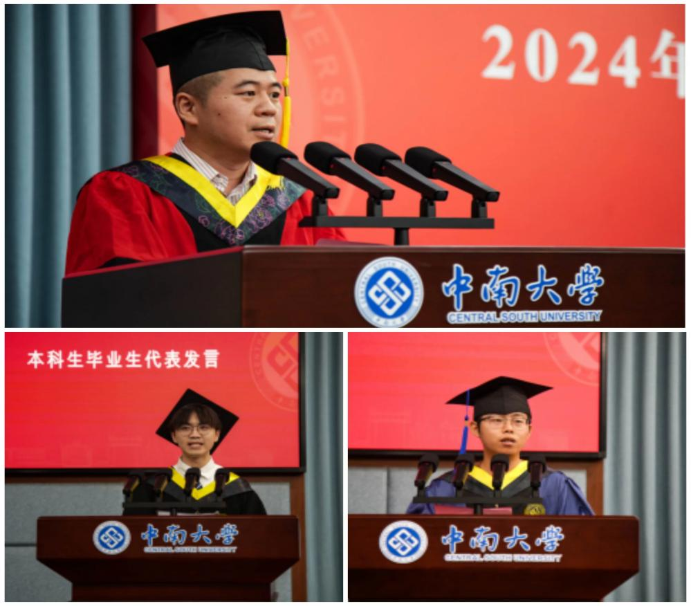 李坊朴和谭汉同学分别作为本科和研究生毕业生代表讲话,恳切的言辞中饱含对师友的感恩、对母校的不舍以及对前途的期许。教师代表林杭教授寄语毕业生将所学知识应用于未来的社会实践中,回馈社会,成为推动社会进步的力量,并深情表示学校和学院永远是大家的坚强后盾。