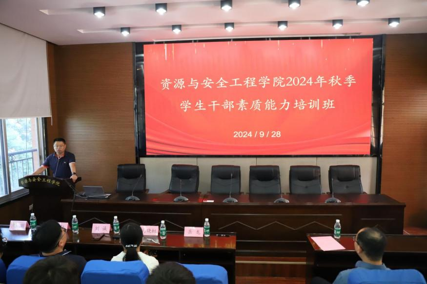 为提高学生干部的综合素质和业务能力,9月28日上午,学院在采矿楼T302报告厅举行2024年秋季学生干部素质能力培训班,本次培训邀请校保卫部副部长刘诚老师、学工部心理健康中心马晓虹老师、宣传部王轩老师和长沙市急救知识和技能普及培训导师周美丽医生等主讲。院党委副书记岳龙,学工办辅导员、本科生班级班长、团支书、学生会和心助会主要学生干部共计120余人参会,会议由于谦老师主持。