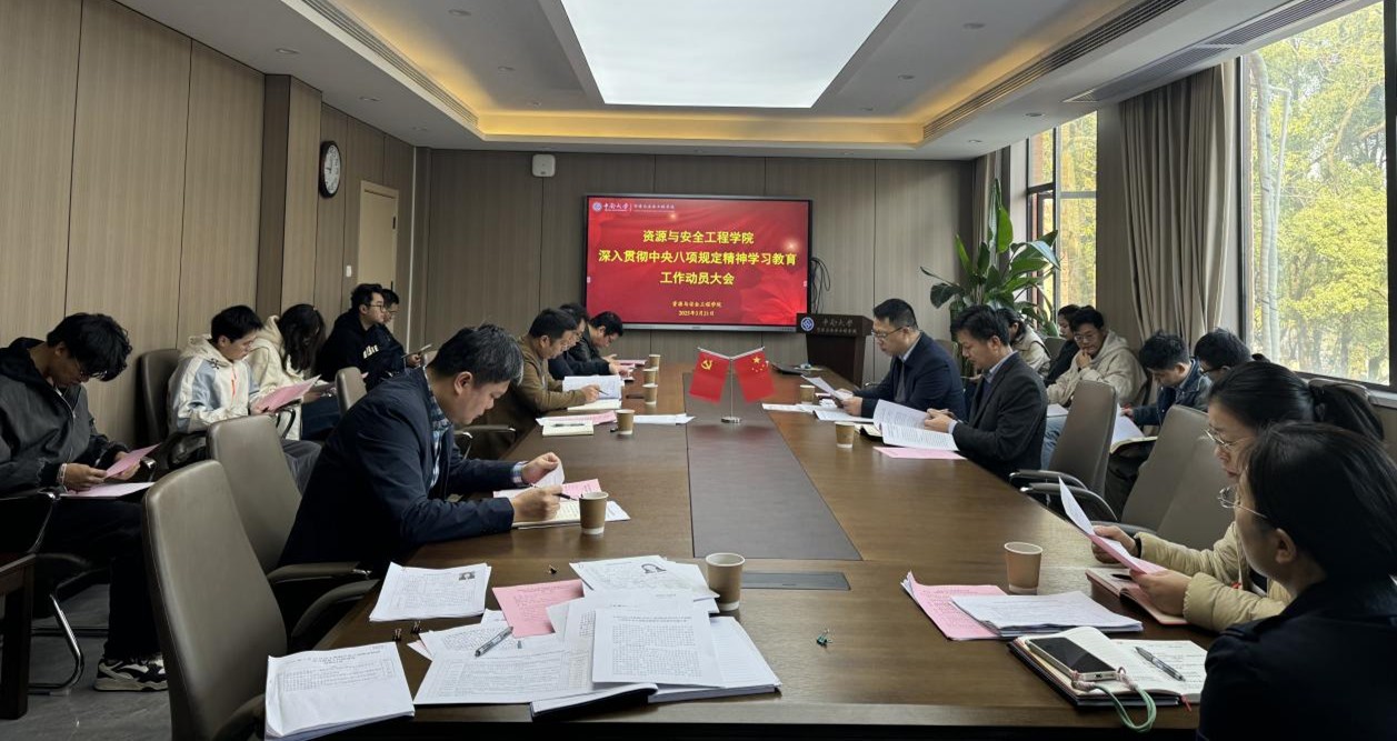 3月21日,资源与安全工程学院召开深入贯彻中央八项规定精神学习教育启动部署会,党委书记秦进主持会议并讲话,全体院党委委员、党支部书记参加会议。