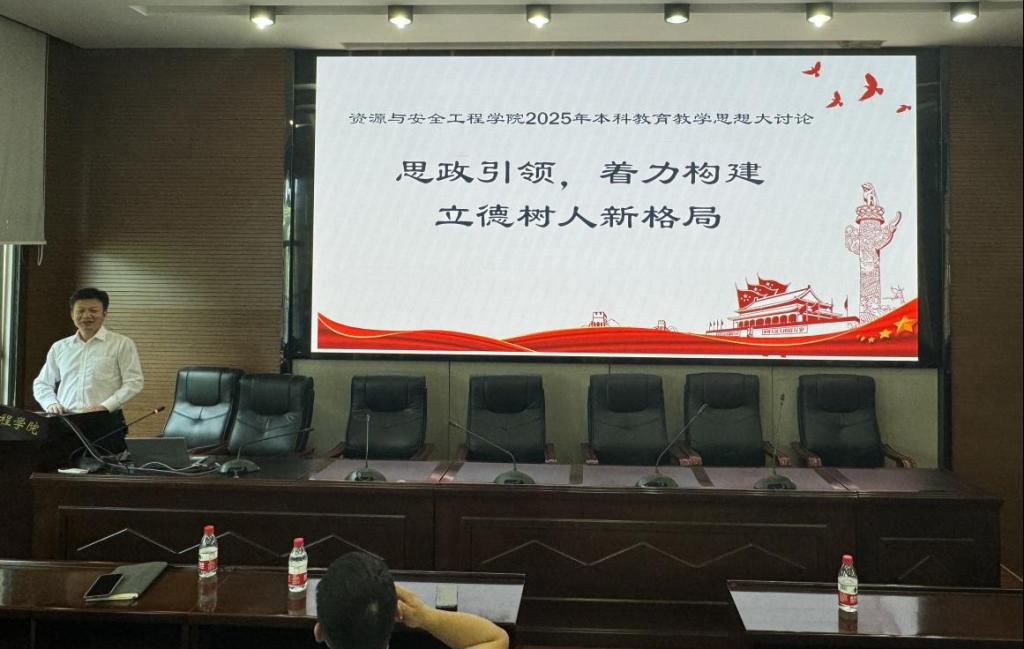 为深入贯彻党的二十大和二十届三中全会、全国教育大会精神,落实中共中央、国务院印发的《教育强国建设规划纲要(2024—2035年)》的部署和要求,yl6809永利资源与安全工程学院于4月17日开展了以“思政引领,着力构建立德树人新格局”为主题的“新一轮本科教育教学思想大讨论”( 以下简称大讨论)活动。学院领导班子和教职工参加会议,会议由院长、党委副书记周子龙主持。