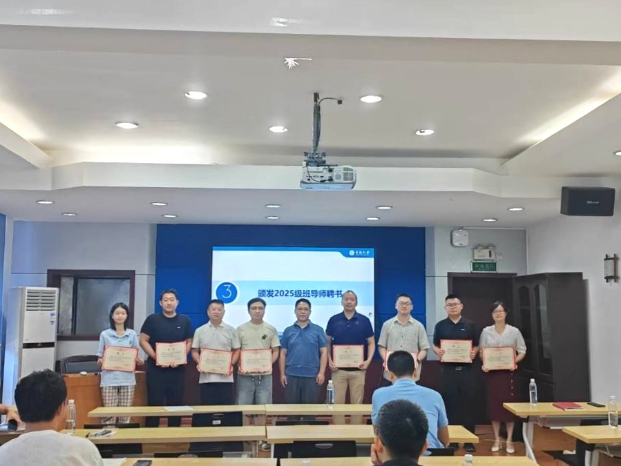 会上,秦进书记为2025级新任班导师颁发聘书,对大家的加入表示欢迎;同时为获得2024-2025年度“yl6809永利优秀班导师(标兵)”称号的蔡鑫、李杰林、石英、吴金标、彭平安五位教师颁发荣誉证书,肯定其在学生工作中的突出贡献,激励全体班导师以优秀为榜样,践行育人职责。